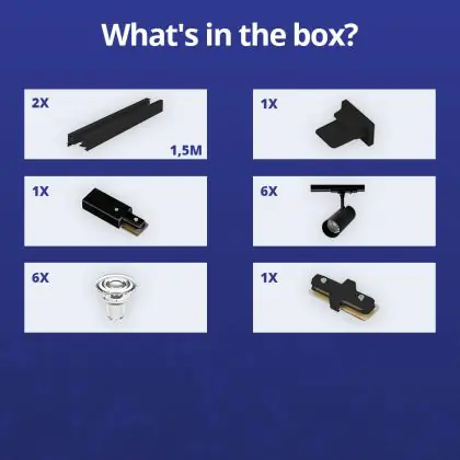 Complete Set 1-Phase Rail 3 Meter Black | incl. 6x Spot + GU10 2700K 3W Dimmable + End Cap, Power Connector and I-Connector