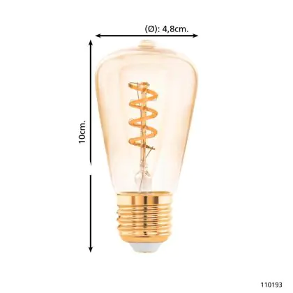 Eglo LED Edison E27 Filament Amber 4W 145lm - 820 Extra Warm White | Dimmable - Replaces 15W