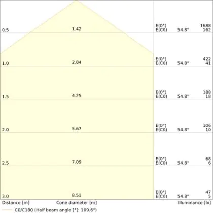 The Luminous Efficacy (lm/W) indicates how efficiently a light source uses energy. We divide the number of lumens by the wattage. The higher the number, the more efficient a product is in terms of energy consumption. LED lighting has a considerably higher lumen/Watt ratio than conventional lighting.