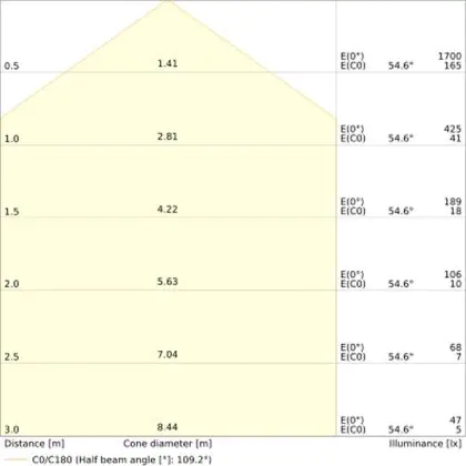 The Luminous Efficacy (lm/W) indicates how efficiently a light source uses energy. We divide the number of lumens by the wattage. The higher the number, the more efficient a product is in terms of energy consumption. LED lighting has a considerably higher lumen/Watt ratio than conventional lighting.