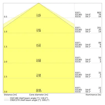 The Luminous Efficacy (lm/W) indicates how efficiently a light source uses energy. We divide the number of lumens by the wattage. The higher the number, the more efficient a product is in terms of energy consumption. LED lighting has a considerably higher lumen/Watt ratio than conventional lighting.