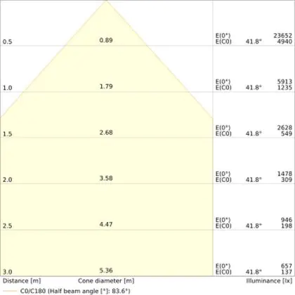The colour code is a combination of colour rendering (CRI) and light colour (Kelvin). The first number indicates the colour rendering (1 = very poor colour rendering, 9 = maximum colour fastness). The second and third number contains the light colour. Example: the colour code 830 consists of good colour rendering (8) and warm white light (3000K). |