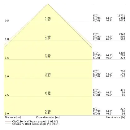 The colour code is a combination of colour rendering (CRI) and light colour (Kelvin). The first number indicates the colour rendering (1 = very poor colour rendering, 9 = maximum colour fastness). The second and third number contains the light colour. Example: the colour code 830 consists of good colour rendering (8) and warm white light (3000K). |