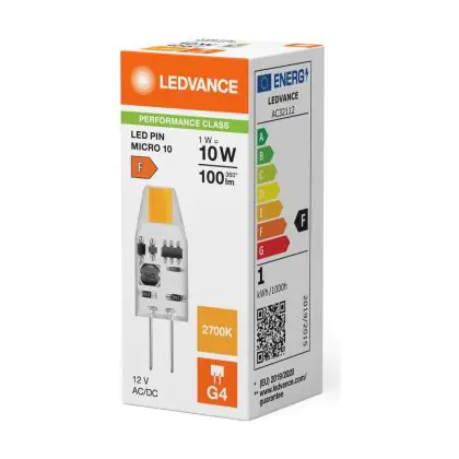 Ledvance LED Pin Micro 12V G4 Clear 1W 100lm - 827 Extra Warm White | Replaces 10W