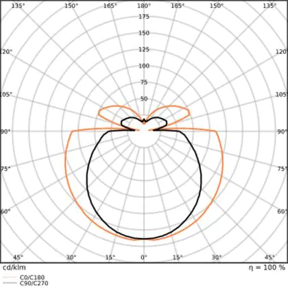 The Luminous Efficacy (lm/W) indicates how efficiently a light source uses energy. We divide the number of lumens by the wattage. The higher the number, the more efficient a product is in terms of energy consumption. LED lighting has a considerably higher lumen/Watt ratio than conventional lighting.