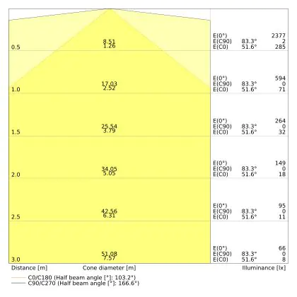 The Luminous Efficacy (lm/W) indicates how efficiently a light source uses energy. We divide the number of lumens by the wattage. The higher the number, the more efficient a product is in terms of energy consumption. LED lighting has a considerably higher lumen/Watt ratio than conventional lighting.