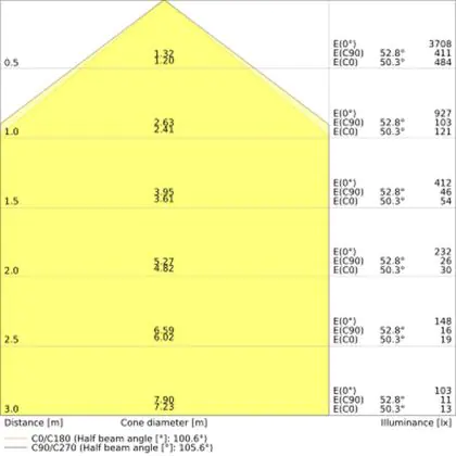 The Luminous Efficacy (lm/W) indicates how efficiently a light source uses energy. We divide the number of lumens by the wattage. The higher the number, the more efficient a product is in terms of energy consumption. LED lighting has a considerably higher lumen/Watt ratio than conventional lighting.