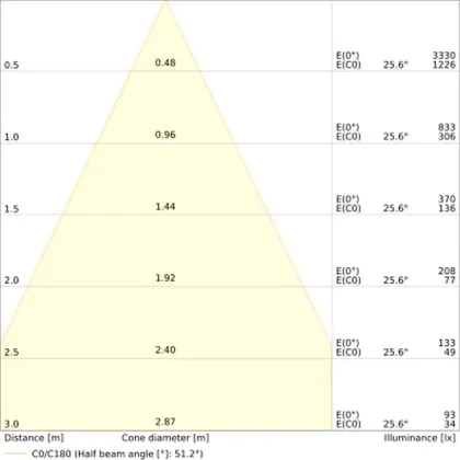 The colour code is a combination of colour rendering (CRI) and light colour (Kelvin). The first number indicates the colour rendering (1 = very poor colour rendering, 9 = maximum colour fastness). The second and third number contains the light colour. Example: the colour code 830 consists of good colour rendering (8) and warm white light (3000K). |