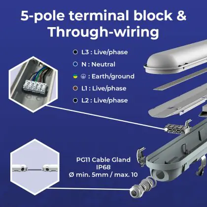 Noxion LED Waterproof Batten Poseidon V3.0 30W 3900/4200lm - 830-865 CCT | 120cm - Through Wiring (5x2.5mm2) - Dali Dimmable