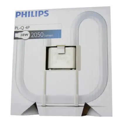 Philips PL-Q 4P are flat 2D type florescent lamps, very energy efficient with a quadrant shape. The PL-Q 4 Pin range is compatible with an electronic ballast. With a length of 207 cm, Philips PL-Q 28W 830 4P have a GR10q socket, made of 4 pins.