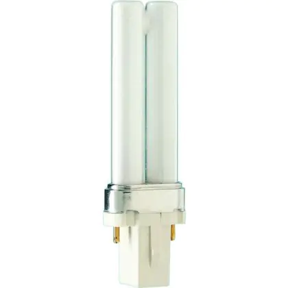 Philips PL-S 2P are compact fluorescent mercury lamps with low pressure discharge with separate power supply. They are compatible with conventional ballasts and are comprised of two tubes. With their G23 socket, Philips PL-S 5W 827 2P easily integrate into light fixtures.