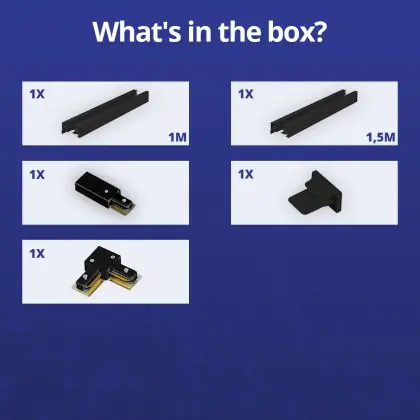 | Manufacturer Name | Complete L shaped 1-Phase Track Set Black - 1 x 1,5 meter incl. End Cap, Power Connector and L -Con | |